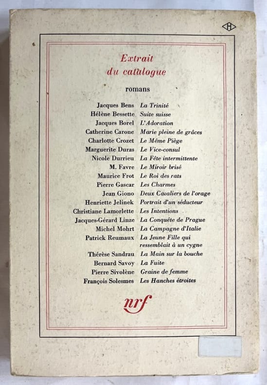 Paris, Nrf Gallimard, impr. Floch, à Mayenne 1966 In-8 20,5 x 14 cm. Broché, couverture beige à rabats, auteur & titre en noir et rouge sur le dos et le premier plat, 242 pp.