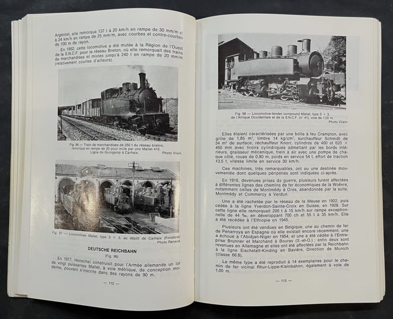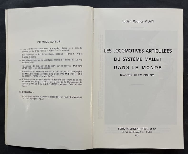 Editions Dominique Vincent / Editions Vincent, Fréal et Cie Paris, 1972 et 1969, petit in-4 demi-basane, dos à quatre nerfs, pièces de titre rouge. Couvertures conservées. 1. La locomotive à vapeur et les grandes vitesses. 204pp.-1f. Très nombreuses photographies N&B. / 2°Les locomotives articulées du système Mallet dans le monde. 284pp.-1f. très nombreuses photographies et croquis. Parfait état.