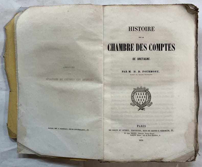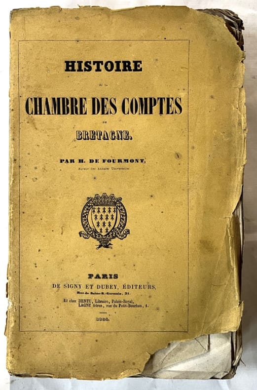 Édition originale. Exemplaire de l'historien rennais Michel Duval, avec son tampon. Hyacinthe de Fourmont était l'auteur des Annales universelles contenant l'histoire du monde de la création à Jésus-Christ, parues en 1848 (Nantes, Guéraud et Hachette).