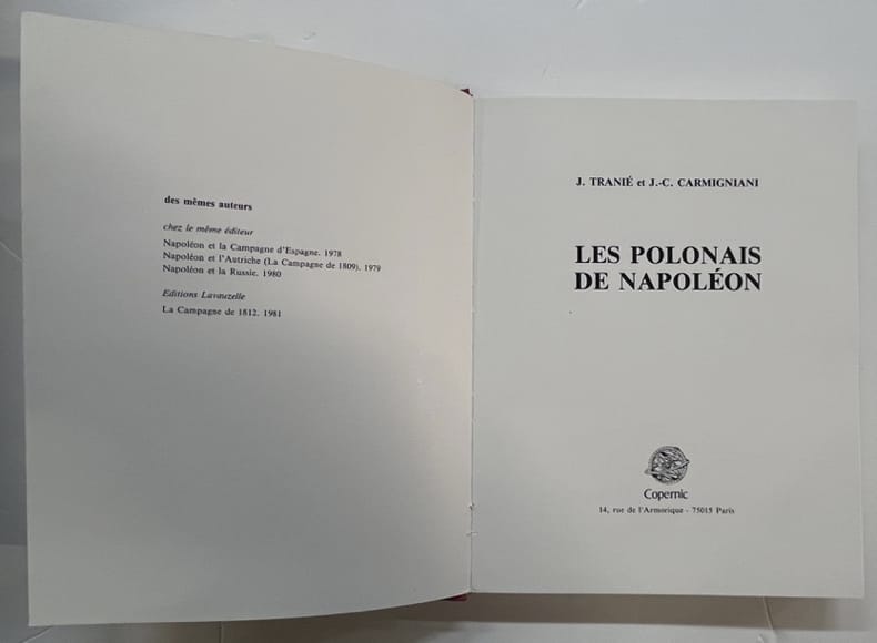 Napoléon avait promis aux Polonais la reconstruction d’une Pologne indépendante, ils s’engagèrent en masse dans ses armées. Il ne tint pas son engagement, ils tinrent leur place dans toutes les batailles de l’Empire ! Tranié et Carmigniani consacrent cet ouvrage de belle facure aux plus célèbres des Polonais – le 1er régiment de Lanciers de la Garde Impériale. Accompagnons ces cavaliers d’exception de leur naissance à 1815 en passant par leur charge fantastique à Somo Sierra, leur charge victorieuse à Wagram, le choix de la fidélité en 1813 et leur courage inépuisable en 1814 ! Les Polonais de l’Empereur se battent en Allemagne en 1813, puis repassent le Rhin au début de l’année 1814 pour participer glorieusement à la campagne de France. Ils se battront à Brienne, la Rothiere, Champaubert, Vauchamp, Montereau. Après l’abdication de l’Empereur, un détachement de 109 cavaliers accompagne Napoléon à l’ile d’Elbe. Le reste du régiment, sous la conduite du général Krasinski, se présente au Grand Duc Constantin et rejoint la Pologne. Lors de la réorganisation de la Garde pendant les Cent jours, les Polonais trop peu nombreux pour reformer le 1er régiment sont amalgamés au 2e régiment de Chevau-légers et prennent rang de 1er escadron sous les ordres du général de Colbert. Ils participeront à la campagne de Belgique et chargeront à Waterloo. — Les livres de Jean Tranié et Juan-Carlos Carmigniani (aujourd'hui tous les deux disparus) reposent tous sur une même et parfaite alchimie : le texte de Tranié est particulièrement bien écrit, dans un français classique, riche, épique ; le récit des opérations militaires est précis et explicatif et il est émaillé de nombreuses anecdotes dramatiques ou croustillantes ; enfin, le travail de recherche iconographique de Carmigniani est d'une richesse incroyable et est mis en valeur par un art très accompli de la de la légende qui fait mouche pour les accompagner. Le présent volume, intitulé « Les Polonais de Napoléon », est intégralement consacré aux faits d'armes du 1er Régiment de lanciers de la Garde Impériale : « sous drapeaux étrangers presque sur toute la terre, ce soldat ne combattit que pour sa patrie ! ». Le livre est un bel hommage aux cavaliers qui s'illustrèrent à la Somosierra, à Lützen, pendant la campagne de France et bien évidemment à Waterloo. « Ils font partie de la légende. Ils incarnent la fougue du cavalier léger, le courage légendaire de la vieille Pologne, la fidélité et le panache » affirme Jean Tranié en conclusion de son merveilleux ouvrage.