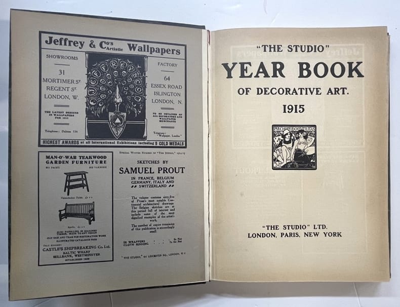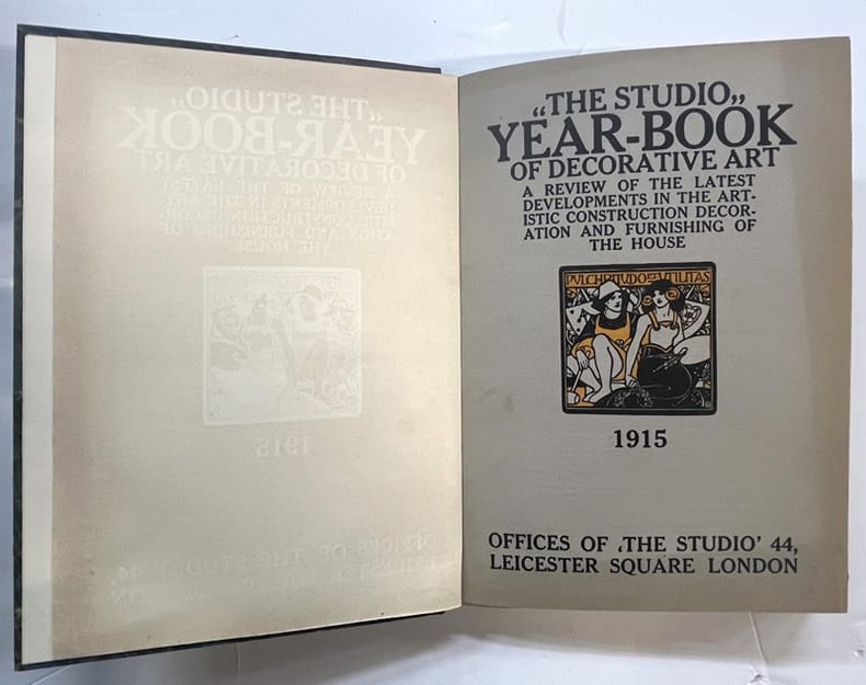 London, Paris, New York, The Studio 1915 In-4 29,5 x 20 cm. Reliure demi-chagrin vert-émeraude, dos lisse, tête dorée, couvertures et dos conservés, VI-239 pp., 8 illustrations en couleurs, nombreuses illustrations en noir & blanc, sommaire,. Exemplaire en bon état.