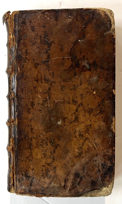 Paris, Theodore de Hansy 1756, 170x100mm, reliure basane. Reliure d’époque plein veau raciné avec titre, caissons ornés et fleurons dorés au dos à cinq nerfs, garde papier marbré. Coiffes et coins légèrement frottés. Très faibles et éparses rousseurs seulement sur les 2 premières et 2 dernières feuilles, tout le reste de l’intérieur propre. Ex-libris : Manfred Gsteiger. Bel exemplaire.
