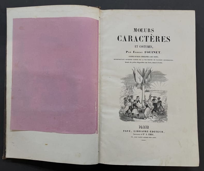 paris éditeur FAYE in 8 reliure éditeur percaline verte dos ornés et doré avec titre et éditeurs , tranches dorées , 280 pages taches de rousseurs sans date vers 1840 . bon etat illustrés de belles lithographies a deux teintes ( 16 ) représentant divers scéne de la vie privée de nations différentes plus ornés de jolie vignettes sur bois dans le téxte
