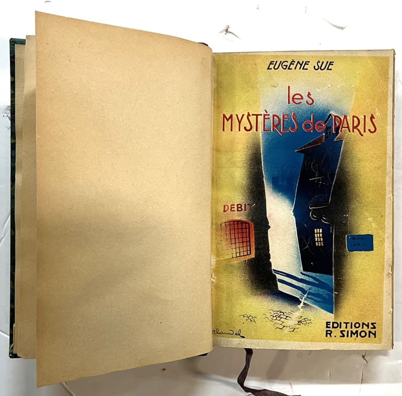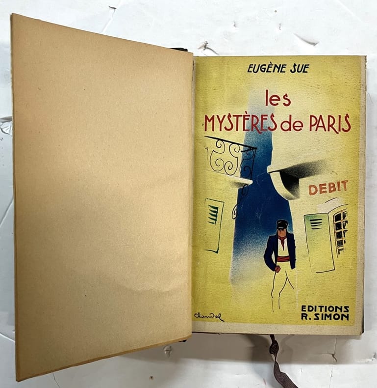 1990 Editions De Crémille, Genève - 1990 - 4 volumes in-4, reliure pleine toile noire illustrée de l'éditeur, tranches dorées - 315 p. + 316 p. + 313 p. + 326 p. - Les gravures figurant dans ces volumes proviennent de l'édition des Mystères de Paris, Librairie Charles Gosselin, éditeur, Paris, 1843.