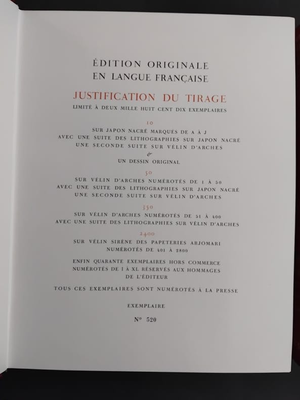 édition originale en langue française Tirage limité à 2810 exemplaires. Exemplaire n° 520 / 2400 exemplaires sur Vélin Sirène des papeteries Arjomari numérotés de 401 à 2800 Bon état d’occasion