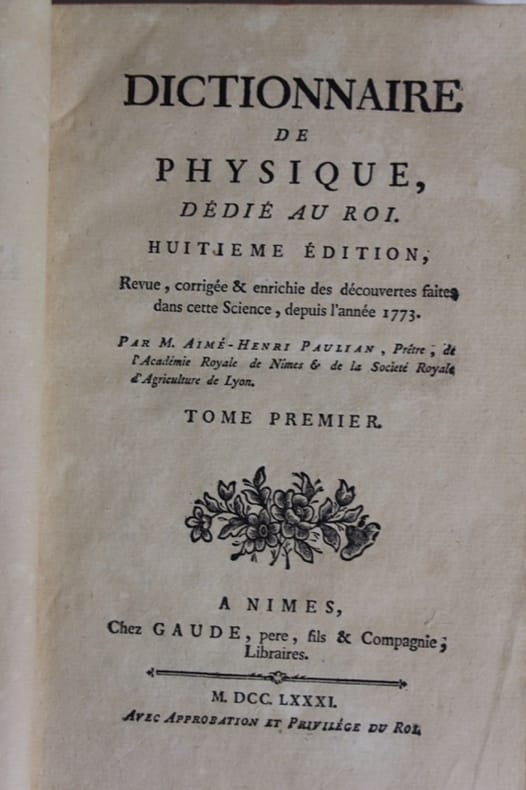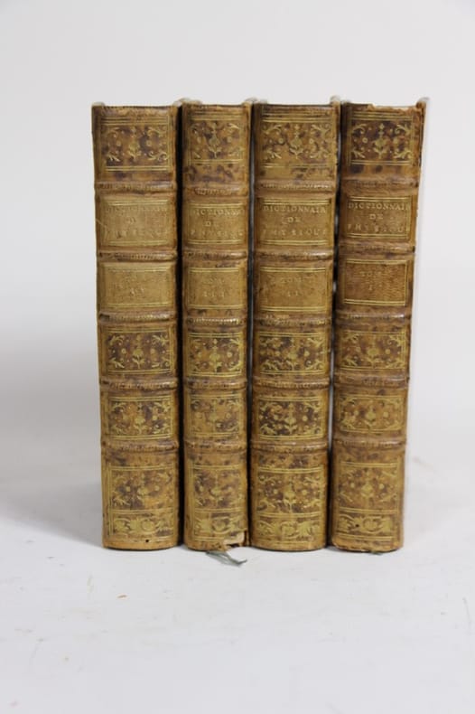 Voici la dernière édition du ‘Dictionnaire’ suivie en 1789 d’une nouvelle édition en 5 tomes. Dans une superbe état . Poggendorff II/389; Quérard VI/639; Hoefer NBG XXXIX/398. Image disp.