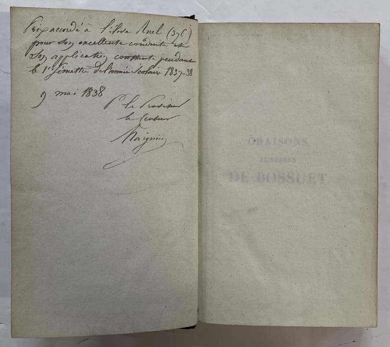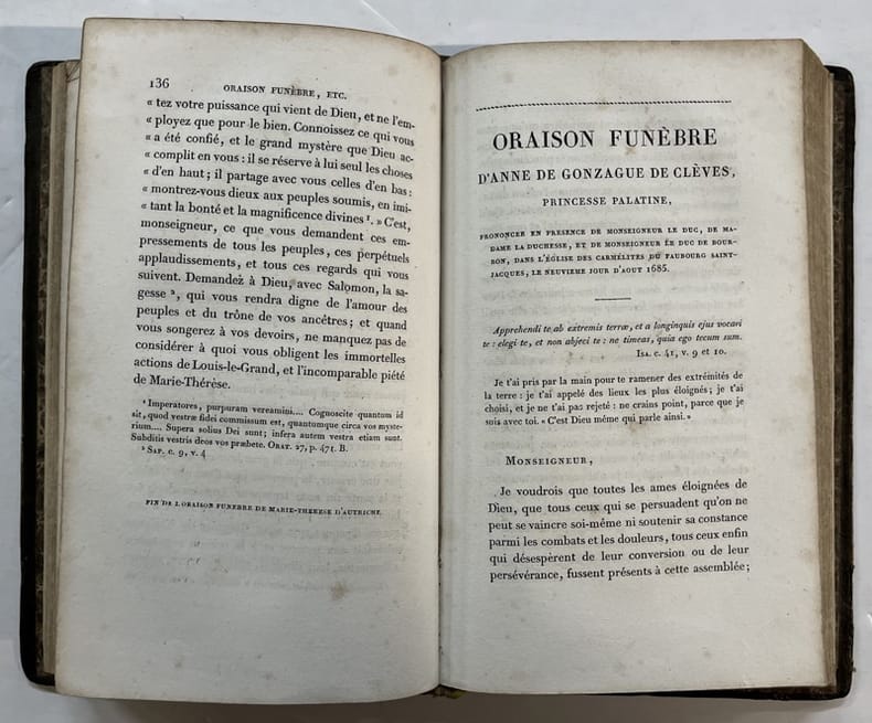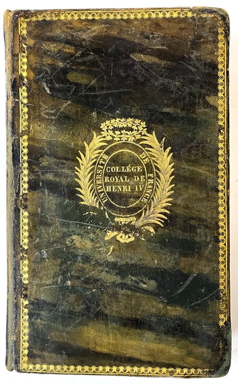 Paris, Baudoin 1828 In-8 21 x 12,5 cm. Reliure de l’époque pleine basane vert-émeraude marbrée,dos lisse orné de roulettes encadrées de petits fers dorés, plats encadrés de roulette dorée, fer du Collège royal de Henri IV sur le premier plat, LV-319 pp., notes, table des matières.