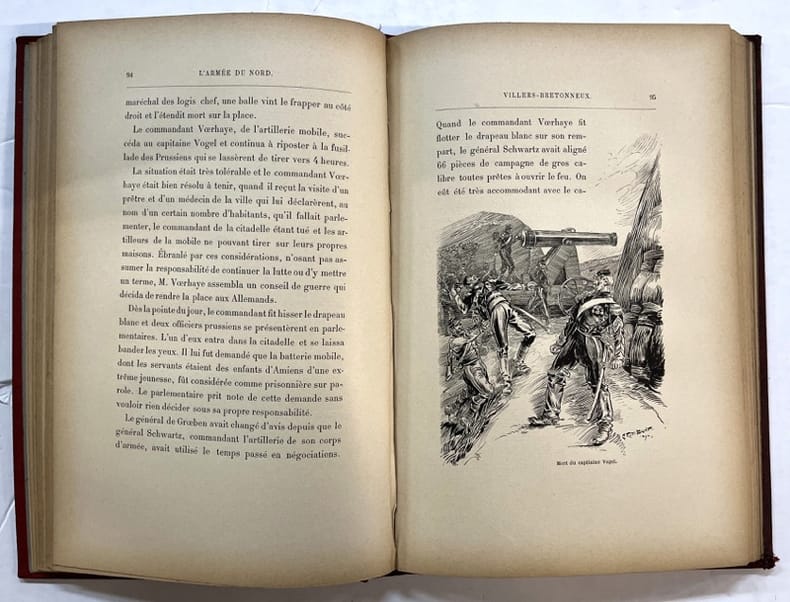 Paris, Firmin-Didot 1895 In-4 27 x 17,5 cm. Reliure éditeur percaline rouge, fer de la Ville de Paris sur le premier plat de couverture, 293 pp., notes, 33 compositions par G. Tiret-Bognet, 1 carte repliée des opérations militaires, table des gravures, table des matières.