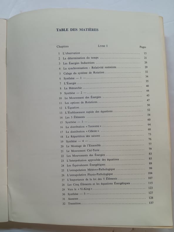 Sommaire : l'observation - la détermination du temps - les énergies inductrices - la synchronisation relativité restreinte - calage du système de rotation - l'énergie - le mouvement des énergies - les options de rotations - les 5 éléments - la distribution terrestre, céleste - la répartition des saisons - le mouvement ciel terre - les mouvements des énergies - les équivalences énergétiques - l'extrapolation météoro-pathologique - vers le yi king etc. Classification Dewey : 610-Sciences médicales. Médecine