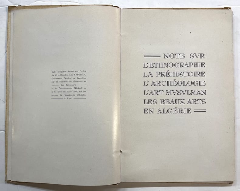 Alger, Gouvernement général, Direction de l'Intérieur et des Beaux-Arts 1948 In-4 broché 25 cm sur 16,5. 111 pages. Ouvrage illustré. 1 cartes. Bon état d’occasion.