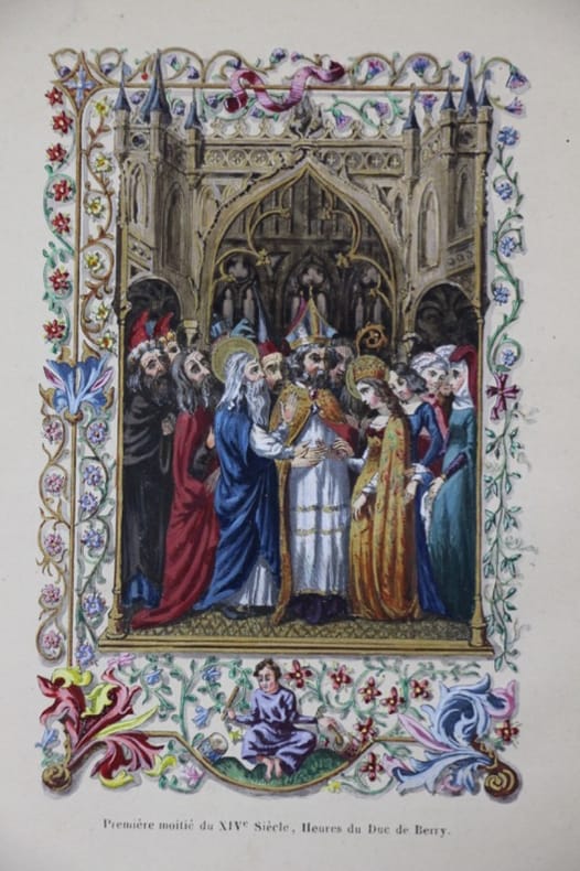 Magnifique livre d'heures illustré par Mademoiselle A. Guilbert d'après les manuscrits anciens du IXème au XVème siècles, tels que les heures du Duc de Berry, les Petites Heures d'Anne de Bretagne, la Bibliothèque Britannique du XIVe, les Manuscrits persans, byzantis et saxons. Bon état d’occasion