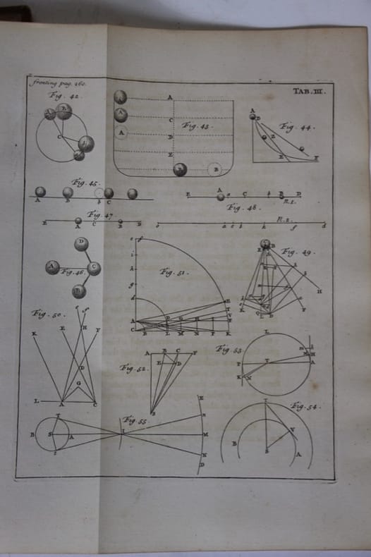 For the Author's Children: an sold by A. Millar, and J. Nourse; G. Hamilton and J. Balfour, and A. Kincaid; J. Barry, and J. Smith, London 1748 In-4 29,5 x 24 cm, plein veau blond époque, dos à nerfs, caissons ornés, filets dorés en coupes, filets à frois sur les plats, , pp 6, liste des abonnés de 20 pages, xx, 392, avec six tableaux dépliants. Rare exemplaire sur grand papier dimensions : 223 mm x 290 mm. Reliure frottée, coiffe de tête arrachée. Brunissures marginales aux premiers et derniers ff., sinon très frais. Ex-don mns. au faux-titre