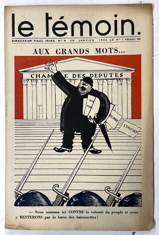 Entre la fin 1905 et le début 1906, le dessinateur et caricaturiste Paul Iribe (1883-1935) lance “Le Témoin”, un périodique satirique illustré ; la mise en page, la maquette, la typographie sont regardées encore aujourd'hui comme exceptionnelles. La couverture et la double page centrale sont imprimées le plus souvent en bichromie, très rarement en trichromie, avec des jeux entre aplats noir, blanc et monochrome superposés et détourés. C'est ainsi qu'on voit en Iribe l'un des fondateurs du courant art déco. Bon état d’occasion
