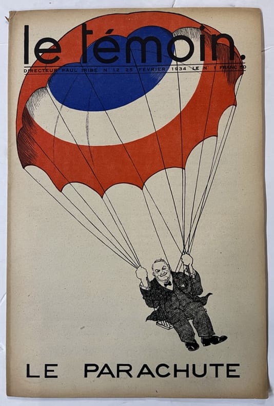 Entre la fin 1905 et le début 1906, le dessinateur et caricaturiste Paul Iribe (1883-1935) lance “Le Témoin”, un périodique satirique illustré ; la mise en page, la maquette, la typographie sont regardées encore aujourd'hui comme exceptionnelles. La couverture et la double page centrale sont imprimées le plus souvent en bichromie, très rarement en trichromie, avec des jeux entre aplats noir, blanc et monochrome superposés et détourés. C'est ainsi qu'on voit en Iribe l'un des fondateurs du courant art déco. Bon état d’occasion
