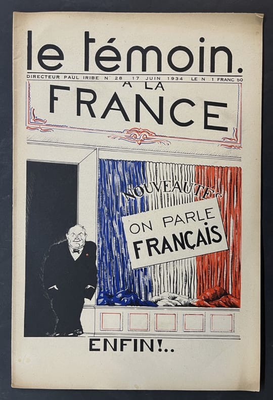 Entre la fin 1905 et le début 1906, le dessinateur et caricaturiste Paul Iribe (1883-1935) lance “Le Témoin”, un périodique satirique illustré ; la mise en page, la maquette, la typographie sont regardées encore aujourd'hui comme exceptionnelles. La couverture et la double page centrale sont imprimées le plus souvent en bichromie, très rarement en trichromie, avec des jeux entre aplats noir, blanc et monochrome superposés et détourés. C'est ainsi qu'on voit en Iribe l'un des fondateurs du courant art déco. Bon état d’occasion