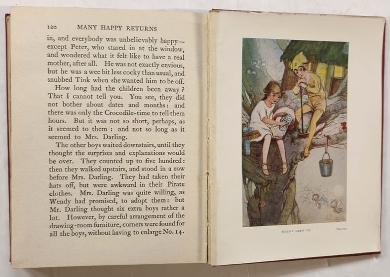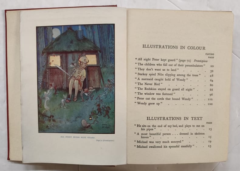 London, Hodder & Stoughton 1930 In-8 21 x 15 cm. Cartonnage éditeur percaline rouge orné d’une composition figurative en noir sur le premier plat de couverture, 128 pp., 10 planches en couleurs hors texte dont frontispice, 19 dessins en noir dans le texte, sommaire.