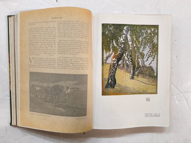 The Studio : An Illustrated Magazine of Fine and Applied Art was an illustrated fine arts and decorative arts magazine published in London from 1893 until 1964. The founder and first editor was Charles Holme (1848-1923), a businessman in the wool and silk trades, who had travelled extensively in Europe and had visited Japan and the United States. The magazine exerted a major influence on the development of the Art Nouveau and Arts and Crafts movements. Bon état d’occasion