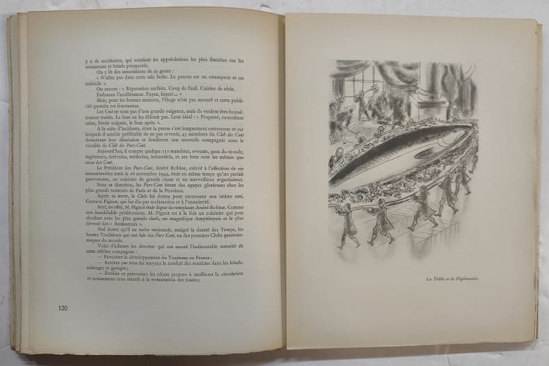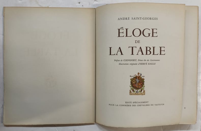 Paris, Confrérie des Chevaliers du Tastevin, éditions de la Couronne 1947 In-4 33 x 25 cm. En feuillets, sous couverture rempliée, dos muet, report du titre bistre sur le premier plat de couverture, 207 ff., 18 illustrations, table des illustrations. Exemplaire en bon état.