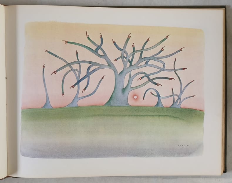 Alice 1976 In-4 à l’italienne, plein maroquin vert bouteille, dos lisse, orné de deux compositions en mosaïque, vivement exécutées dans l’esprit du recueil, 4 pp & 24 planches en couleurs. Bel exemplaire.