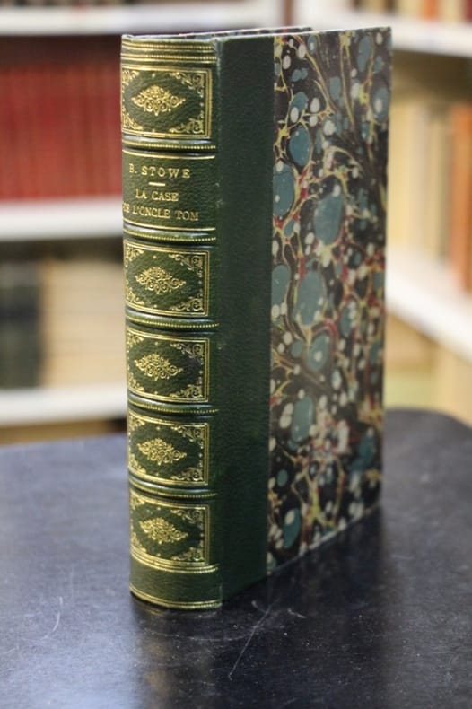 grand in-8 illustré de 18 planches hors-texte, 316p. :: Édition jeunesse de ce classique par Harriett Elizabeth Beecher-Stowe publié en 1851 pour dénoncer l'esclavage aux Etats-Unis (première traduction en françaisen 1853). :: Reliure de l'époque, demi-chagrin à coins, 4 nerfs, dos frotté au nom de l'ancien propriétaire (O. Blais en queue). Cachet humide d'Omer Blais, Chicoutimi. Bon état.