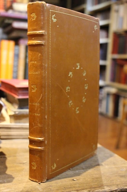 Lyon, Masson 1924 In-8, pleine basane brune, dos à nerfs, filets bruns, roulettes dorées et fers spéciaux, roulette d’encadrement des plats, petites triutes dorées aux quatre coins et en cercle au centre, couvertures conservés restaurations, tête dorée, 398 pp. Coiffes, coupes et coins un peu frottés. Bon exemplaire.