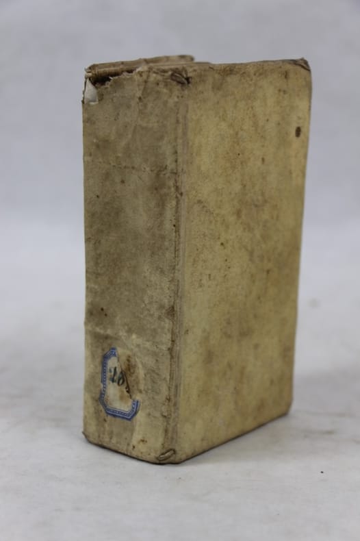 Lyon, Pierre Marniolles 1620 2 livres en un vol. in-16, vélin crème muet de l’ép., titre gravé, 302- 401- 5 pp. Bandeaux et lettrines. Coiffe sup. arrachée. Rares rousseurs.