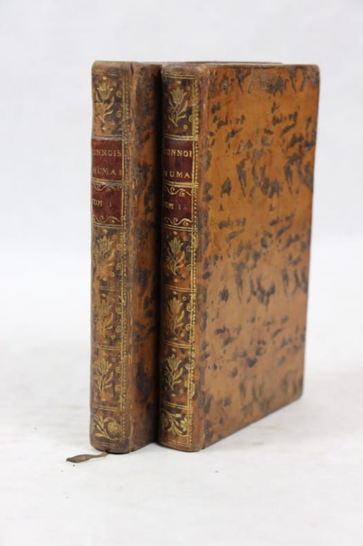 Amsterdam, Pierre Mortier, 1746 2 volumes in-12 de XXX, 265 pp. - (2) ff., 292 pp., basane mouchetée, armes au centre des plats, dos à nerfs ornés de caissons de fleurons irradiants dorés, pièces de titre et de tomaison de maroquin rouge et vert, tranches rouges (reliures de l'époque).