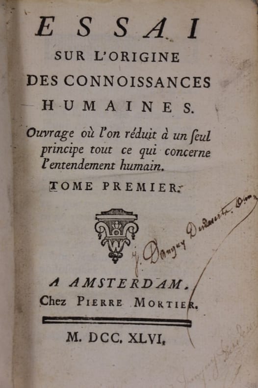 ---- EDITION ORIGINALE ---- TRES BEL EXEMPLAIRE ---- PREMIER OUVRAGE DE CONDILLAC ---- "The development of CONDILLAC's thought is recorded in a very coherent way in his main works : L'ESSAI SUR L'ORIGINE DES CONNAISSANCES HUMAINES (1746), Traité des systèmes (1749), Traité des sensations (1754), Traité des animaux (1755), La logique (1780) and La langue des calculs". (DSB III pp. 380/383)**8775/ARM1A
