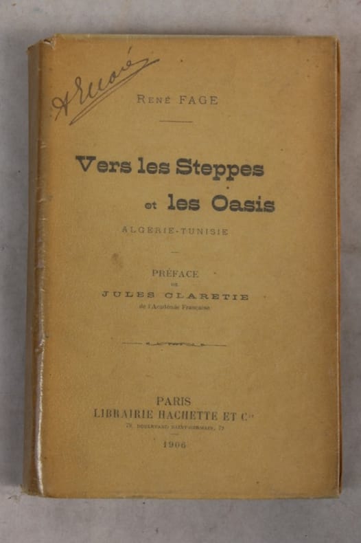 Un volume in-8°, reliure rigide éditeur (de modèle courant, percaline rouge avec motifs ornementaux dorés rouges et noirs), dos lisse avec même ornementation. En frontispice une photo de femme, en noir : ‘”Indigène en costume de ville”. 182 pages + une table des matières. Nombreuses gravures en noir in texte. Exemplaire de facture courante, sans doute destiné aux établissements scolaires en guise de livres de Prix. L’auteur (1848-1929), un Corrézien, fut juriste, archéologue, historien, écrivain. Le bien connu, Jules Claretie, écrit: “Monsieur Fages n’a pas voulu écrire un guide, pas même un récit de voyage, il n’a pas étudié le pays. Il a flâné. Il a erré . Il a vu, comme il le dit très simplement, des choses qu’il n’avait pas encore vues, et ressenti des impressions toutes nouvelles pour lui. Et il a noté, pour lui-même, pour les siens, ses sensations et ses visions. Voilà son livre”. Les dorures sont encore vivantes mais quelque peu éteintes . Malgré tout, TRES BON ETAT.