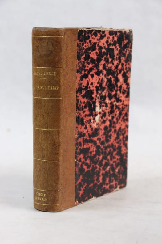 1912, Librairie Hachette et Cie, in-12 cartonné de 217 pages, couverture percaline marron, décors noir et or, titrage doré, tranches bordeaux, La Tripolitaine d'hier et de demain, ouvrage contenant 52 gravures tirées hors texte et deux cartes en noir | Etat : bon état, coins et coiffes un peu frottés (Ref.: ref85243)