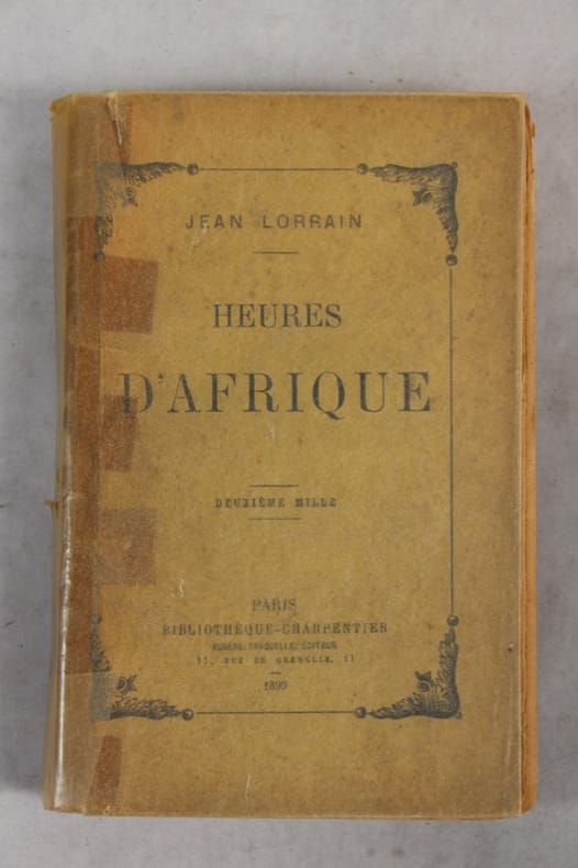 Paris Bibliothèque-Charpentier, Eugène Fasquelle éditeur 1899 un volume in-12°, (4) 354 pp. Demi-chagrin rouge d'époquez, dos à nerfs orné de l'auteur et du titre or. (reliure un peu frottée au niveau des coupes et des coins, une mouillure claire angulaire sur l'ensemble des pages mais sans incidence sur le texte, une autre mouillure marginale sur 60 pages mais sans incidence sur le texte, feuillets uniformément brunis). Edition originale sur papier courant. Marseille. Oran. Tlemcen. Sidi Bel Abbès. Diligence d'Afrique. Mostaganem. Les chemins de fer. Alger sous la neige. Blidah. Les Amandiers . Fathma. Divertissements arabes. Banlieue d'Alger. D'Alger à Constantine. Constantine. El Kantara. Thimgad. Types de Biskra. Printemps de Tunis.A bord de l'Abd-el-Kader. Quartier de Tunis. Tunis sous la pluie. Comme elles voyagent. Tunis mystérieuse. Sousse. Sfax. A bord du Tell. Tripoli de barbarie. Comme elles voyagent.