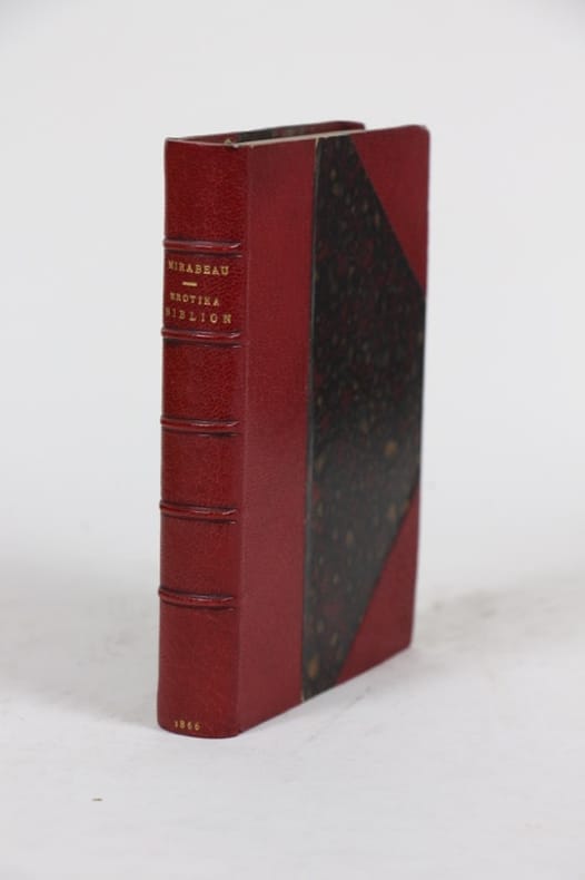 Nouvelle édition revue et corrigée sur un exemplaire de l'An IX et augmentée d'une préface et de notes pour l'intelligence du texte. Il s'agit de la rarissime édition de 1833, bien moins courante que celles du XVIIIe siècle. Malheureusement il manque la page de titre et la préface de 12 pages. Mirabeau "conçut l'heureuse idée de dévoiler, aux yeux de l'avenir, dans son Erotika Biblion, combien depuis le berceau du monde, les libertés étaient foulées aux pieds; comment les turpitudes et les intrigues des prêtres avaient forgé les fers de l'esclavage, et de quelle manière les rois s'étaient arrogé la puissance, en s'étayant de l'astuce et de la démoralisation".
