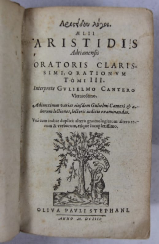 L’oeuvre d’Aristide se compose de cinquante-quatre Discours et quelques autres écrits, qui permettent de connaître l'état moral de la société au temps des Antonins. Les plus connus de ses discours, outre ses Discours Sacrés, sont le Panathénaïque, éloge d'Athènes, et son pendant romain, intitulé En l'honneur de Rome. Bon état d’occasion