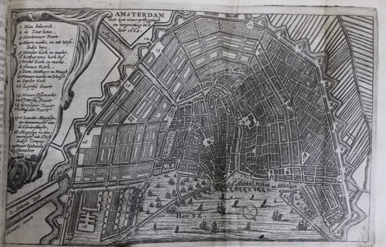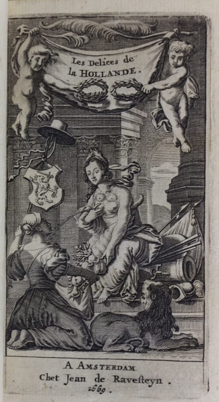 Le premier guide de la Hollande publié en français (1651) et un des succès littéraires de la seconde moitié du XVII° s. Les plans graves en taille-douce sont accompagnes d’une legende indiquant les principaux edifices. Bon état d’occasion