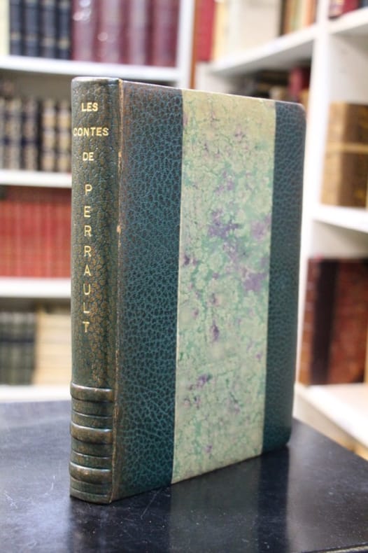 Bruxelles, éditions de la Nef d’Argent, exclusivité de la Librairie Montaigne 1943 L’un des 1 300 exemplaires comprenant l’état définitif des gravures sur papier Cartrige. Couvertures d’origine conservées. In-8, reliure demi-maroquin vert à bandes, dos à 3 nerfs, 152 pp. + 3 pp., frontispice, 15 gravures en couleurs hors-texte, 22 bandeaux et culs-de-lampe gravés sur bois.