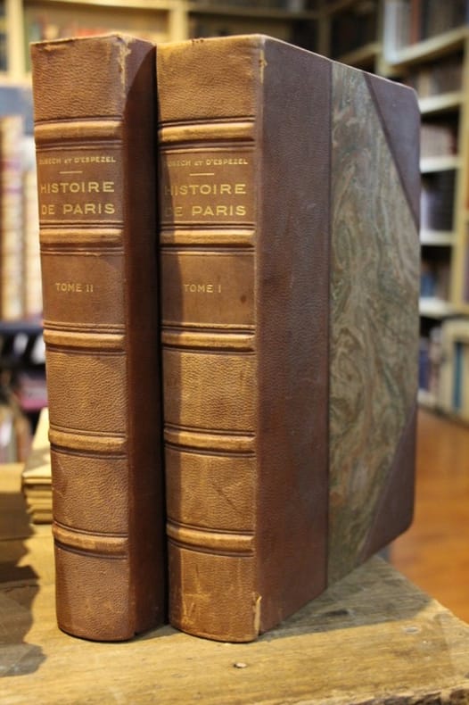 Seconde édition, 2 vol. in-8 cartonnage bradel de l'époque, toutes tranches marbrées, Chez J.-N. Barba, Paris, 1828, lxxxiv-484 pp. ; 684 pp. avec 4 plans dépliantes et 2 planches hors texte (dont une dépliante) avec les 43 vues des monuments ; Titre complet : Dictionnaire Historique de Paris (2 Tomes - Complet) Contenant la description circonstanciée de ses Places, Rues, Quais, Promenades, Monumens et Edifices publics, de ses Etablissements en tout genre, de ses Institutions scienfifiques et littéraires, de ses Curiosités, etc. ; des détails sur les attributions des différens Fonctionnaires publics, et sur toutes les Professions industrielles, depuis leur origine jusqu'à nos jours ; l'histoire de toutes les Corporations civiles et religieuses, des Moeurs et usages de Paris à toutes les époques, etc. etc. Orné de 43 vues des Monumens de Paris, de 4 plans de cette ville, le premier 150 ans avant J.-C., le second en 1223, le troisième en 1589 et le dernier de nos jours