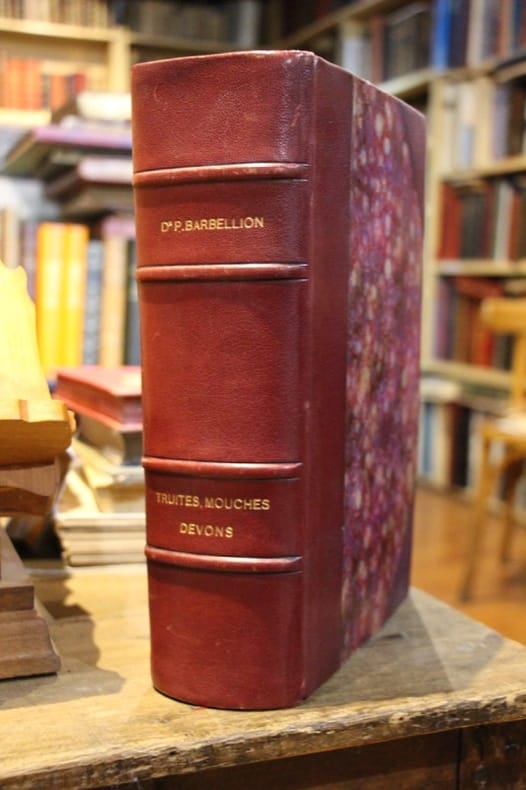 Librairie Maloine, Paris, 1948 1 fort volume grand in-8 (28 x 20,5 cm) de 1.181-(1) pages. Très nombreuses illustrations dans le texte et hors-texte en noir et blanc, figures techniques, schémas, reproductions de photographies. Reliure pleine toile verte éditeur, premier plat de couverture avec étiquette imprimée 14 x 12 cm contrecollée (truite avec titre doré), le tout en excellent état de conservation. Intérieur comme neuf. Beau papier satiné de qualité. Quelques infimes plis marqués aux coiffes. Édition originale. Il a été tiré en outre 350 exemplaires sur papier couché. Véritable bible du pêcheur de la truite à la mouche et au lancer léger, ce monumental ouvrage est l'oeuvre d'un pur passionné. Tout y est méticuleusement et précisément présenté : matériel, techniques, sensations, même l'écologie est largement présente dans ce superbe volume très recherché des collectionneurs-pêcheurs. C'est avec La Truite d'A. Vavon (1926), l'autre livre indispensable et incontournable qui doit être présent dans toute bibliothèque halieutique. Ouvrage riche de 52 illustrations hors-texte dont 34 planches photographiques en noir et 2 planches couleurs présentant des mouches artificielles, avec de très nombreuses figures techniques. Ce volume, relié sur un exemplaire broché à l'état de neuf, possède son premier plat de couverture (le seul illustré) en parfait état, ce qui est notablement rarissime pour cet ouvrage. Il n'est pas rare de trouver cet ouvrage dans un état médiocre ou passable, dans un superbe état de fraîcheur tel qu'ici c'est une autre histoire ... Superbe exemplaire resté très frais dans sa reliure éditeur pleine toile décorée.