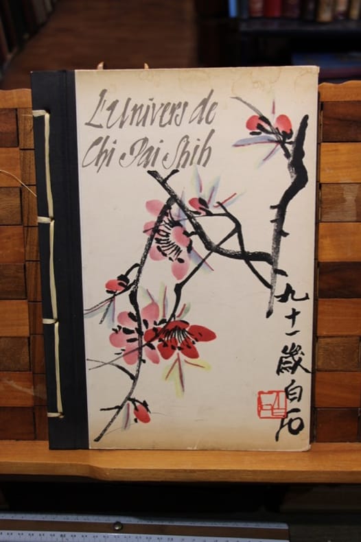 Feldafing (Allemagne), Buchheim éditeur 1961 In-4 30 x 21 cm. Montage à la chinoise, couverture illustrée d'une aquarelle de Chi pai Shih, 20 illustrations en couleur sur papier plié en deux dans le sens de la hauteur, chaque planche est légendée sur la page de gauche., 6 pp. de texte. Légères mouillures en tête des plats. Bel exemplaire. - Traduit par F. et A. BRUSCHWEILER