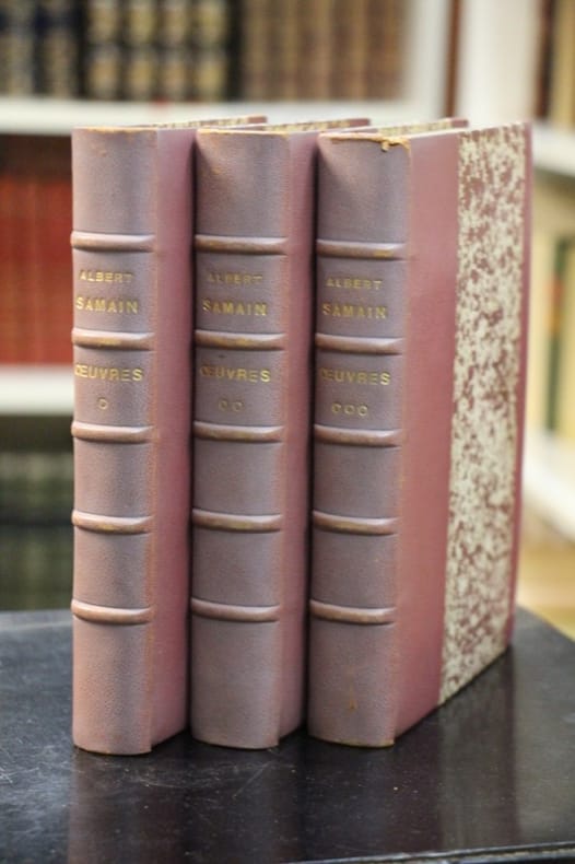 Mercure de France 1924 édition à tirage limité, l’un 1 109 des 1 100 exemplaires sur pur fil Lafuma. 3 tomes. In-8, reliure signée Blaizot demi chagrin mauve à bandes, dos à 5 nerfs, titre et auteur dorés, tête dorée. 250 - 291 - 286 pp. Couvertures et dos d’origine conservés. Dos légèrement insolés, coiffes et coins légèrement frottés. Bel exemplaire.