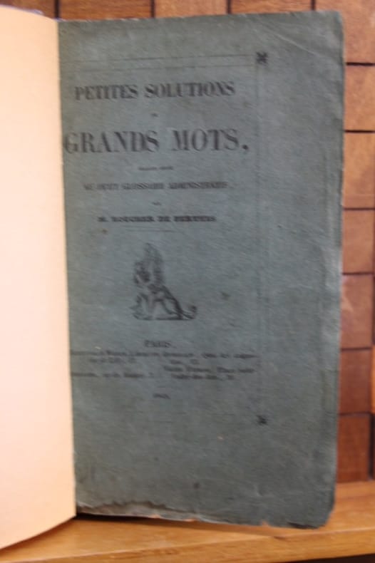 Unique édition, peu commune, de cette satire des slogans et des obsessions sociales consécutives à la Révolution de février, témoignant d'une ironie féroce et décalée (rappelons que l'auteur fit toute sa carrière officielle dans les douanes, et subit les conséquences des bouleversements de 1848). Le genre n'est pas celui qu'on attend du précurseur de la paléontologie que fut Jacques de Crèvecoeur de Boucher de Perthes (1788-1868), mais il ne faut pas oublier que l'homme était un polygraphe impénitent, qui a produit dans quantité de domaines.Cf. Thuillier (Guy) : Témoins de l'administration. De Saint-Just à Marx (Paris, Berger-Levrault, 1967). - - VENTE PAR CORRESPONDANCE UNIQUEMENT - LIEN DE PAIEMENT, NOUS CONSULTER.