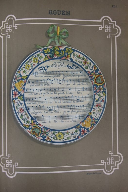 Le chant, les instruments de musique en céramique et les objets décorés tels la poterie ancienne ou les assiettes à couplets et airs notés. Belle monographie tirée à 300 exemplaires. Bon état d’occasion