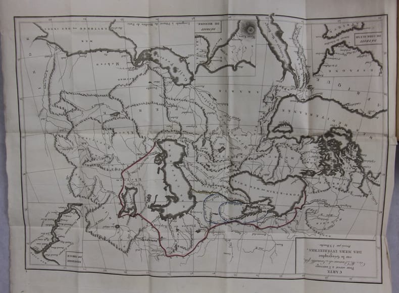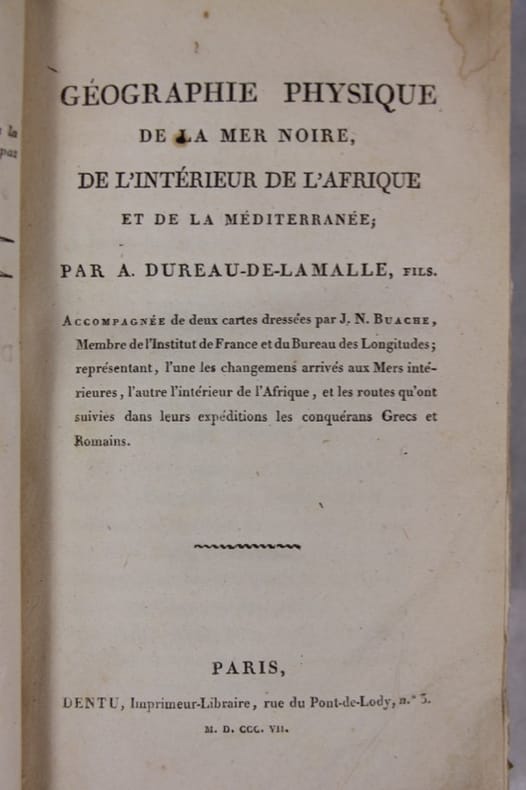 Edition originale de ce travail érudit sur la formation du Bosphore, ou l’auteur (1777-1857) confronte les opinions des géographes anciens et modernes. Bon état d’occasion