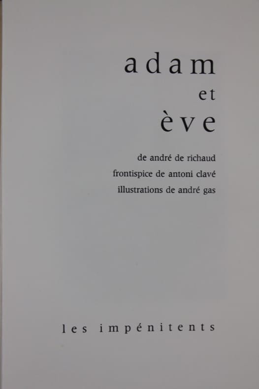 Paris Les Impénitents 1967 In-4, en feuilles, couverture imprimée (emboîtage de l'éditeur).Un frontispice gravé à l'eau-forte par Antoni Clavé, et 11 aquatintes originales, 2 bois originaux et 6 vignettes par André Gas. Tirage limité à 160 exemplaires numérotés sur vélin de Rives. Un des 25 exemplaires accompagnés d'une estampe originale supplémentaire justifiée et signée par André Gas.