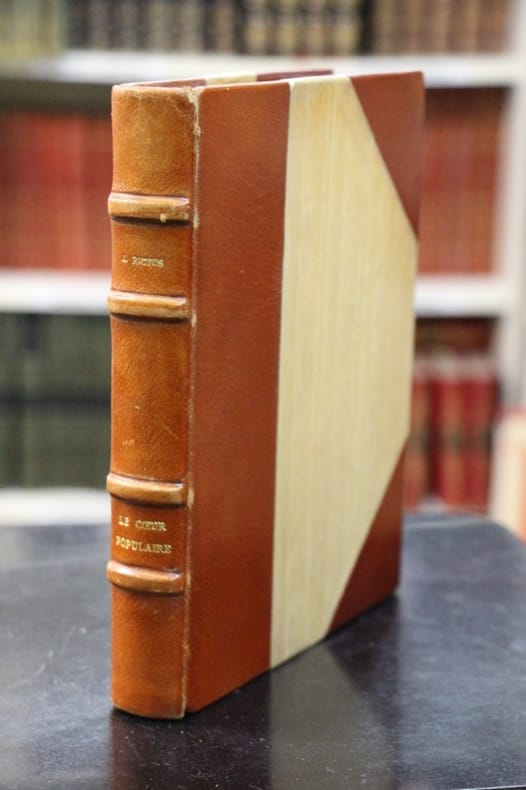 Paris, Eugene Rey, 1914 15.2x20.6 cm., 224 pp., edition avec un portrait de Jehan Rictus par Steinlen en n/b et 3 fac-similes de lettres d' Albert Samain et de Stephane Mallarme adressees a l'auteur, relie demi-maroquin brun a coins, signee par Laurent Peeters - Anvers. Filet dore cernant les plats de pap., dos orne, dos a 4 nerfs et finnement fleuronnes dores (decor floral), tete doree, couverture imprimee d'editeur. Tirage limite. Tirage de 1000 exemplaires sur papier velin d'Arches numerotes de 126 a 1125.