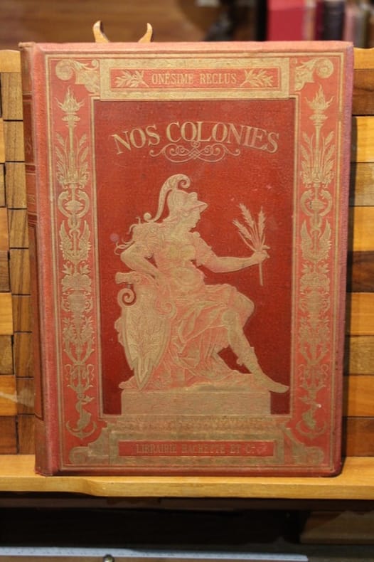 Librairie Hachette et Cie 1890 In-4. Cartonnage de l’éditeur pleine percaline rouge, plats biseautés, premier plat orné d’une figure allégorique, tranches dorées, 592 pp., texte sur 2 colonnes, 252 gravures dans et hors-texte, 18 cartes. Petit manque en tête de la page de faux-titre, sinon exemplaire en bon état, avec gouttière régulière.