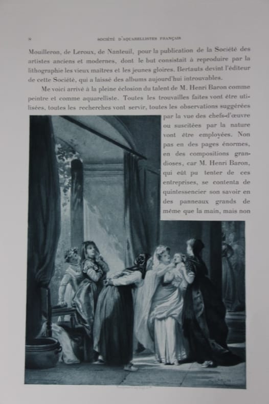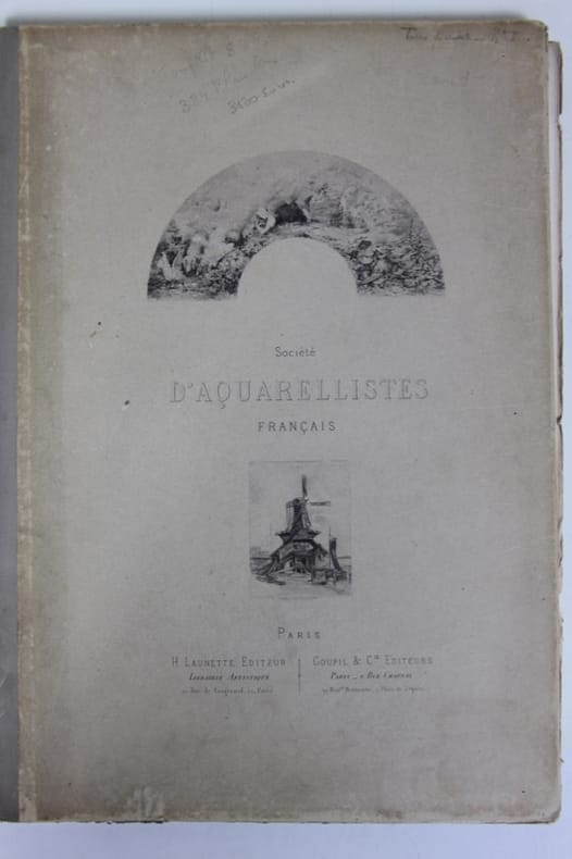 Superbe publication de la Société d'Aquarellistes Français contenant la notice biographique de 24 sociétaires et la reproduction de quelques-unes de leurs oeuvres. Les textes de Montrosier, Pradel, Silvestre, Saint Juirs, Burty, Goetschy, Menard, Yriarte, Fourcaud, Meurville, Claretie, Chennevières, Halévy, Lostalot et Vachon, sont consacrés à Baron, Beaumont, Delort, Detaille, Doré, Duez, François, Harpignies, Heilbuth, Isabey, Jacquemart, Jacquet, Jourdain, Lambert, Lami, Le Blant, Leloir, Lemaire, Neuville, Nathaniel de Rothschild, Tissot, Vibert et Worms. Bon état d’occasion