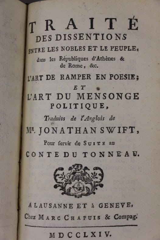 Le 3e volume, "Traité des dissensions entre les nobles et le peuple, dans les Républiques d'Athènes & de Rome ; L'Art de ramper en poésie ; l'Art du mensonge en politique", est édité par Marc Chapuis en 1764. Bon état d’occasion