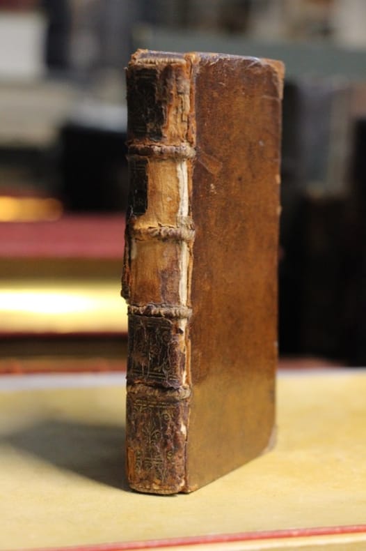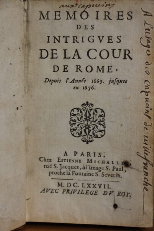 Estienne Michallet 1677 In-18 8 x 14 cm. Reliure de l’époque pleine basane fauve, dos à 4 nerfs, fers dorés, 6 + 265 pp. Coiffes usées, coins usés, manque au milieu du dos, intérieur jauni mais correct. En l’état. L’esprit particulier de la Cour de Rome dans le dernier quart du XVIIe siècle, et la différence entre celle-ci et le Saint-Siège.
