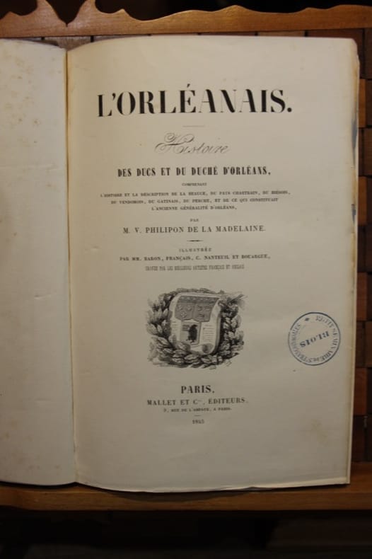 Paris, Éditions Mallet et Cie, 1845. Relié, demi basane, 18,5 cm x 26 cm, VII+ XCX (sic)+ 475 pages, 2 cartes couleur hors-texte, 26 gravures sur acier hors-texte dont des portraits de la famille d’Orléans, nombreuses illustrations in-texte. Texte de M. V. Philippon de la Madelaine, illustrations de Baron, Français, C. Nanteuil et Rouargue, reliure de Habert, relieur à Montereau. Il a été relié à la suite trois textes dont deux sur Napoléon et 39 gravures sur acier, certaines sur chine, pleine page représentant des personnalités ou des monuments. Rousseurs sinon bon état