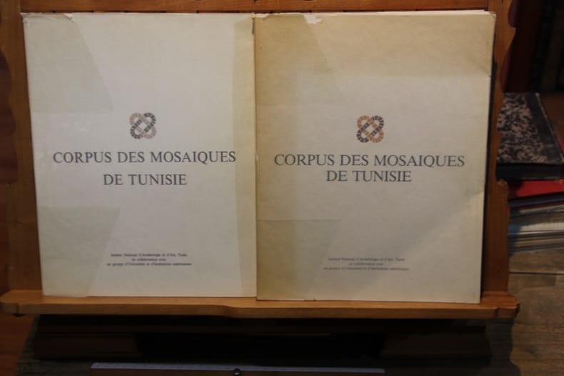 Tunis, Institut National d’Archéologie et d’Art, En collaboration avec un groupe d’Universités et d’Institutions américaines 1980 2 volumes. In-4 21 x 27 cm. Brochés sous couvertures imprimées. XI + 89 pp., 51 planches en noir et blanc et en couleurs hors-texte, 18 plans dépliants in fine. - XXVI + 172 pp., 79 planches en noir et blanc et en couleurs hors texte, 34 plans dépliants in fine. Volume I : Région de Ghar el Melh Porto Farina Atlas archéologique de la Tunisie, Feuille 7, Fascicule 2 Utique, Mosaïques in situ en dehors des Insulae I-II-III - Volume II : Région de Zaghouan Atlas archéologique de la Tunisie, Feuille 35, Fascicule 1 Thuburbo Majus, Région du Forum